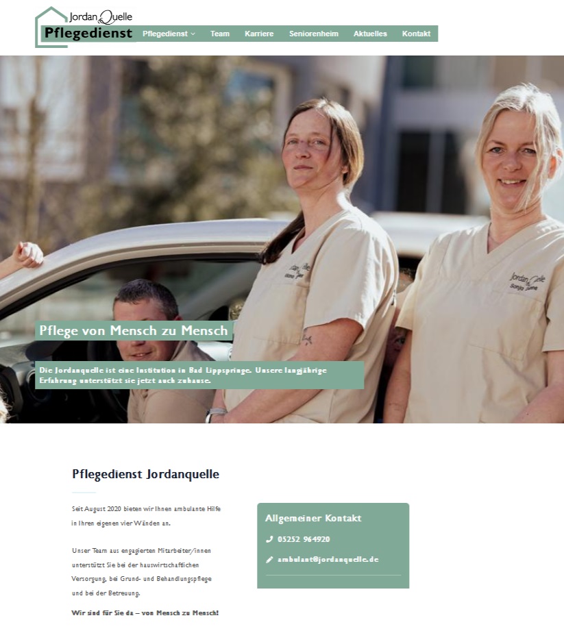 Für den Pflegedienst Jordanquelle haben wir einen neue und moderne Internetseite auf WordPressbasis entwickelt. Ziel war es das breite Angebot der EInrichtung in Bad Lippspringe zu präsentieren. Erreichbar ist die Seite unter www.pflegedienst-jordanquelle.de